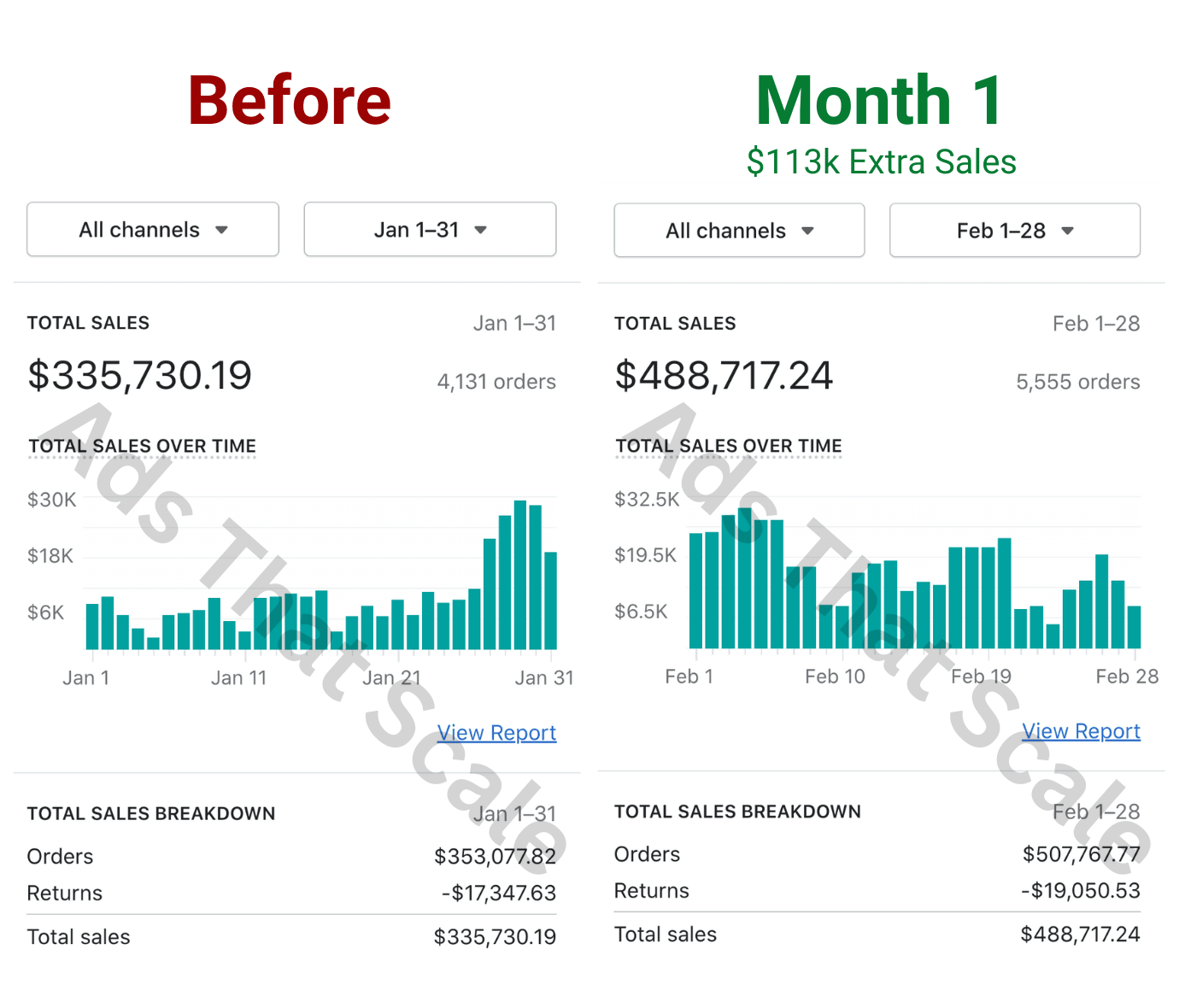 This brand was stuck at 200k - 300k per month. The business owners were overloaded, they had a great product, but couldn't scale because they were doing everything in their business.